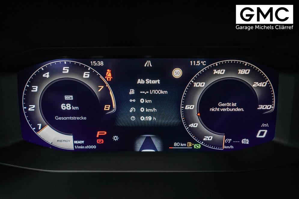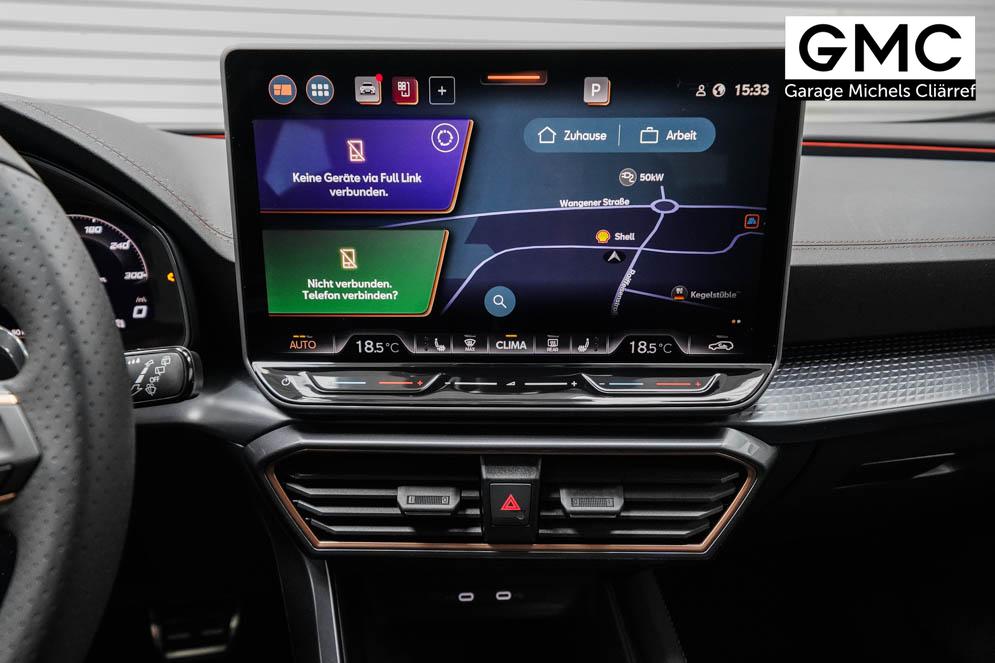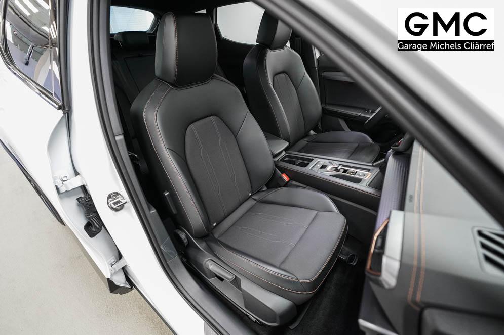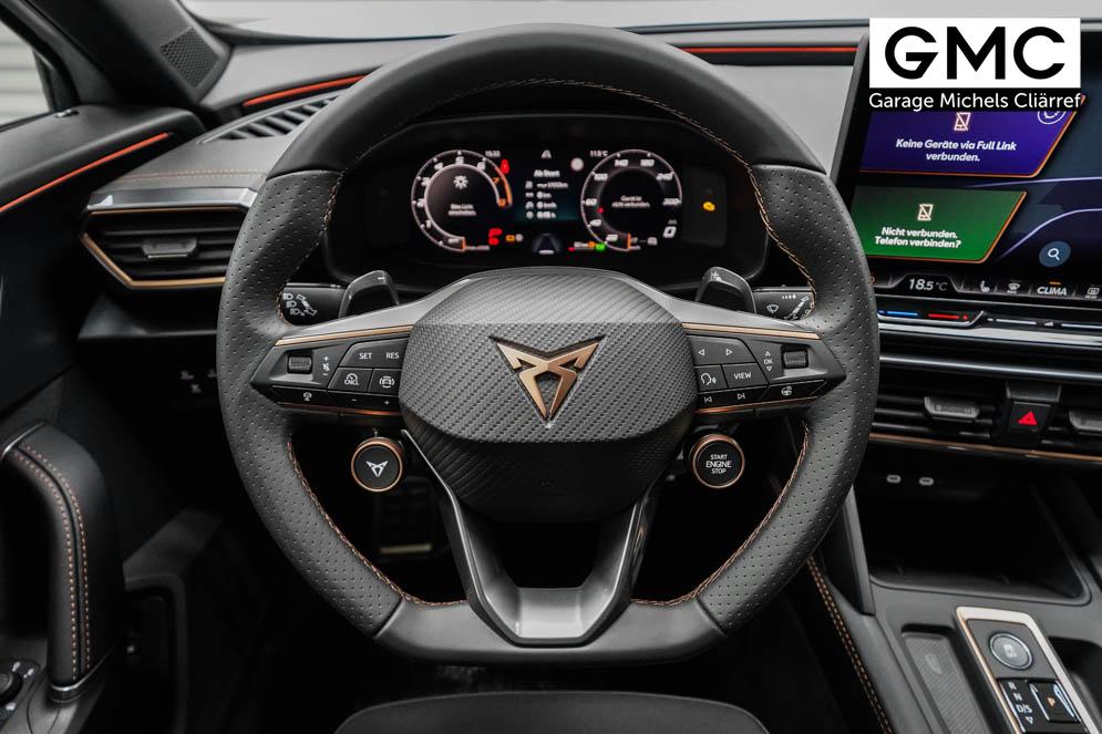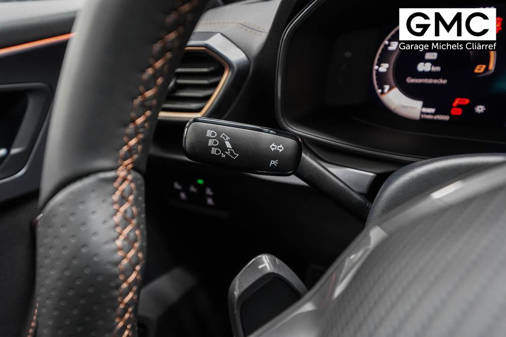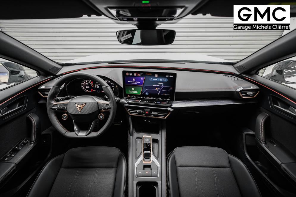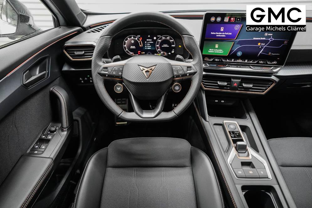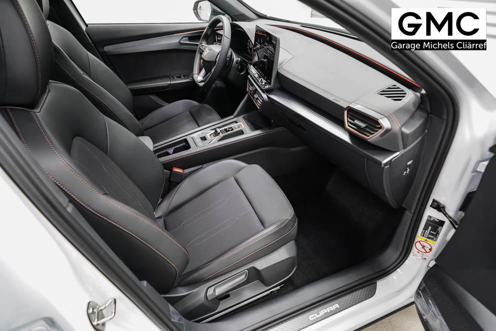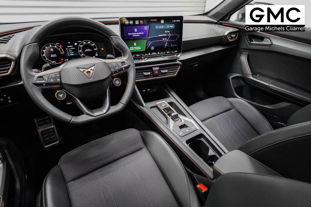 Beifahrersitz höhenverstellbar, Fahrersitz höhenverstellbar, Lederlenkrad, Lendenwirbelstütze vorne, Mittelarmlehne vorne, Sitzbezug Stoff, Gepäckraumabdeckung, geteilt umklappbare Rücksitzlehne, Lenkrad höhenverstellbar, Smart Wraparound Interieur Light, Beheizbares Lenkrad, Multifunktionslenkrad mit Satellitentasten, Isofix, Isofix Beifahrersitz, abgedunkelte Scheiben, 19 Zoll Alufelgen Sandstorm, Dachreling schwarz, ABS, Alarmanlage, Außenspiegel elektrisch, Fensterheber elektrisch, Kopfairbags, Nebelscheinwerfer, Seitenairbags, Servolenkung, Sitzheizung, DCC, ESP, Wegfahrsperre, Zentralverriegelung mit Funk, Außenspiegel beheizbar, Beifahrerairbag, Fahrerairbag, Parkpilot hinten, Parkpilot vorne, Reifendruckkontrolle, Regensensor, Lichtsensor, Digital Cockpit, Tempomat Abstand ACC, Notbremsassistent, Spurhalteassistent plus, Totwinkelassistent, Verkehrszeichenerkennung, Cupra HD Matrix LED Ultra Scheinwerfer, LED-Tagfahrlicht, Rückfahrkamera, Intelligent Park-Assistent, Elektrische Heckklappe inkl. Virtual Pedal, KeylessEntry, StartStopSystem, Innenspiegel automatisch abbl., Müdigkeitswarnsystem, Notrufsystem, Klimaautomatik 3-Zonen, 360-Grad-Kamera, Geschwindigkeitsbegrenzer, Freisprecheinrichtung, Induktionsladestation, Touchscreen, USB, Radio DAB, Bluetooth, Bordcomputer, Navigationssystem, Cupra Full Link, variabler Ladeboden, Exit Assist, Stauassistent, Pre-Crash, erweiterte Herstellergarantie 5 Jahre/100.000km,