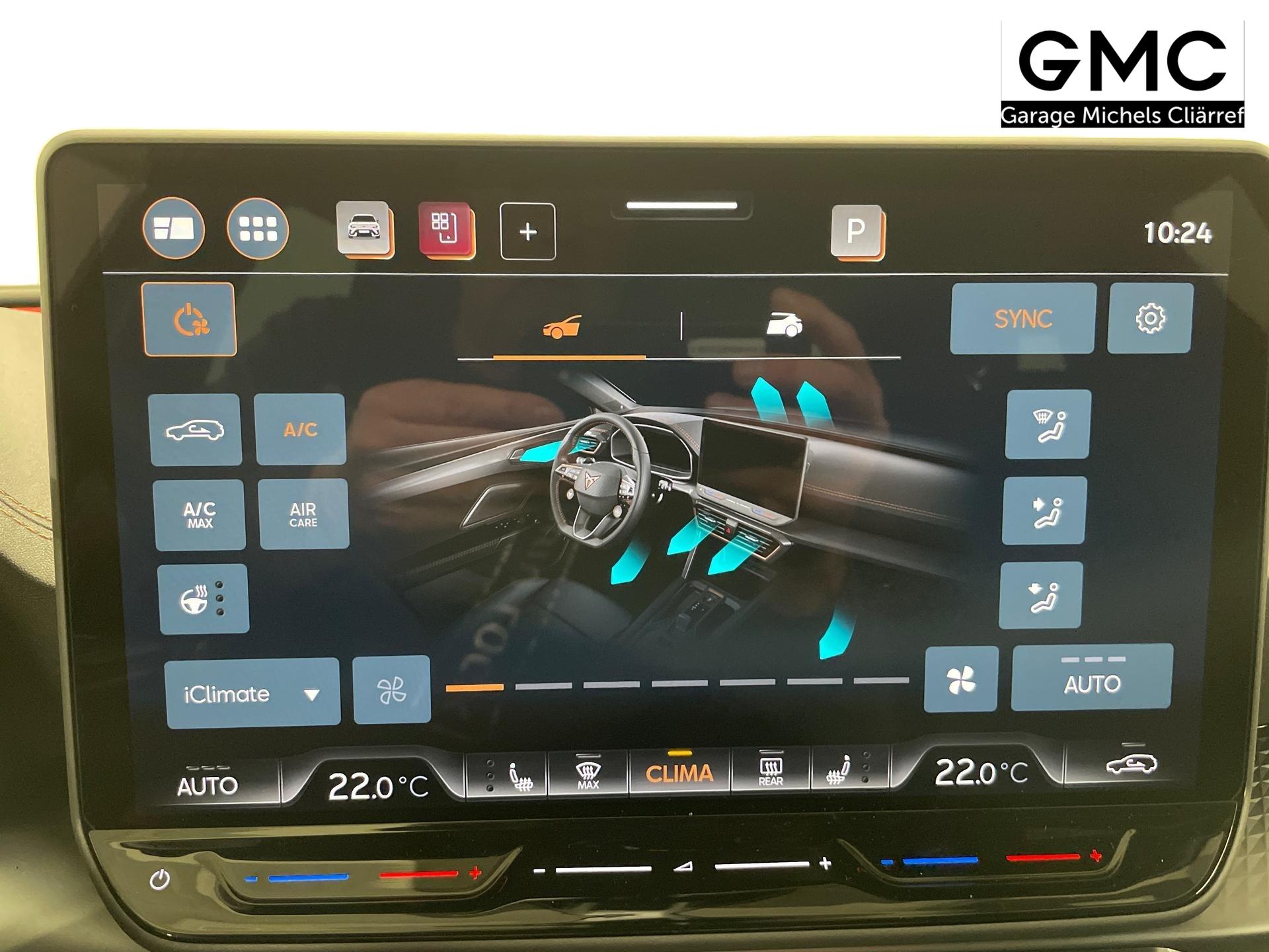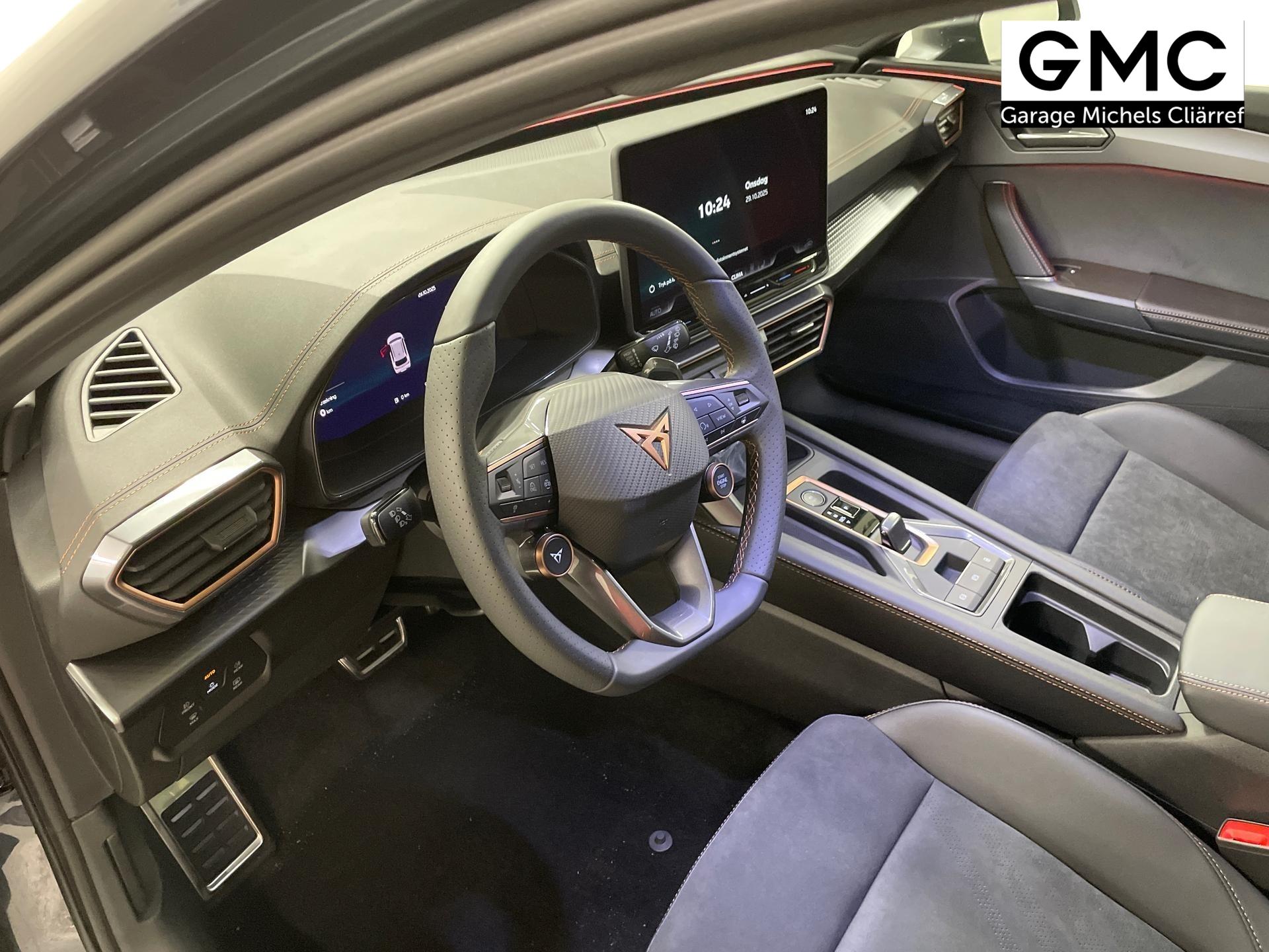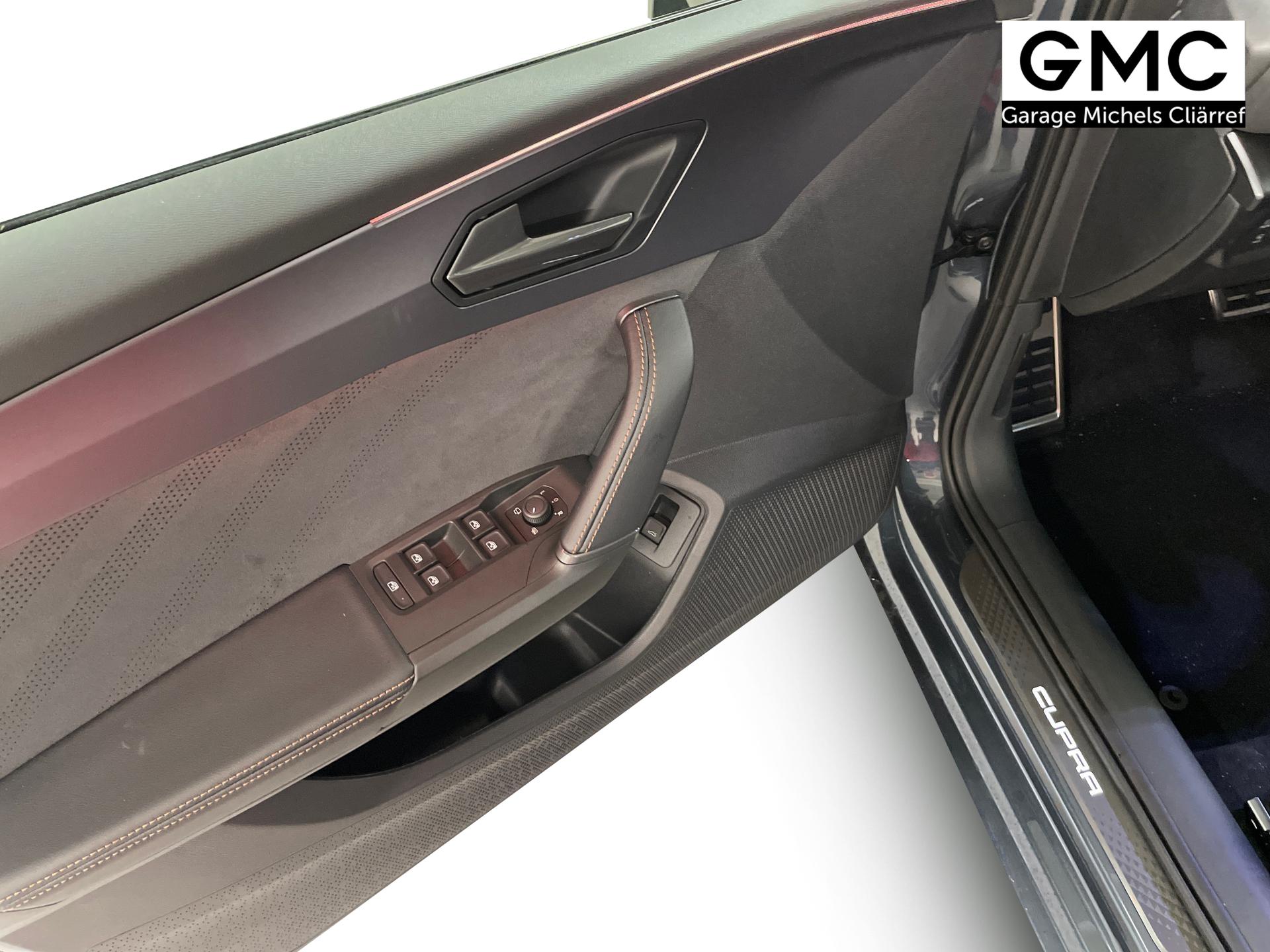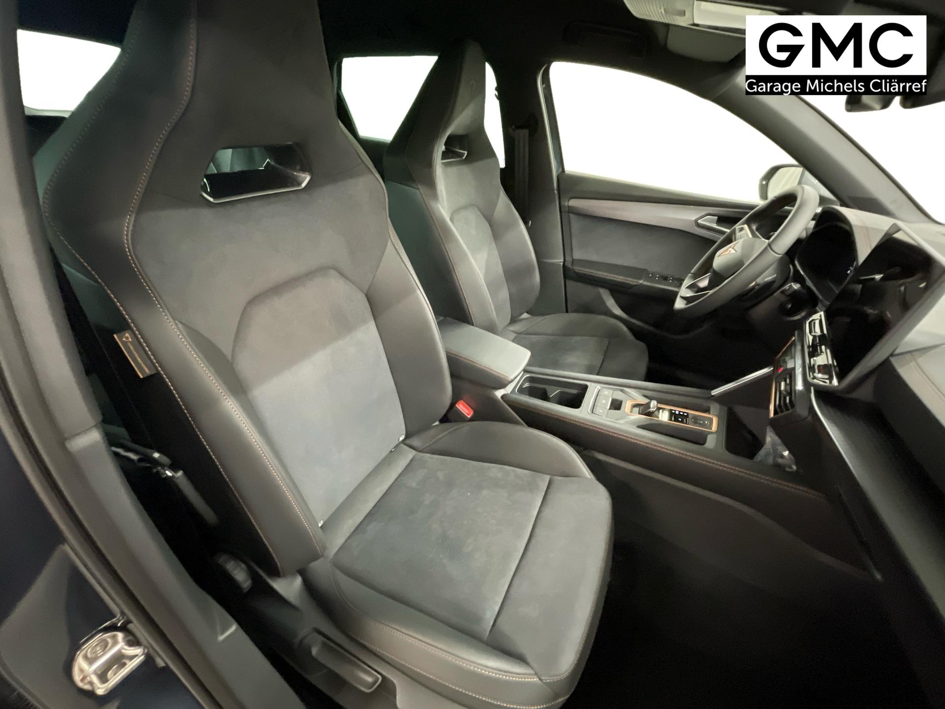 Innenausstattung CG - CUPRA Sportschalensitze vorne mit Sitzmittelbahn in Dinamica, Schwarz mit Blau Akzenten