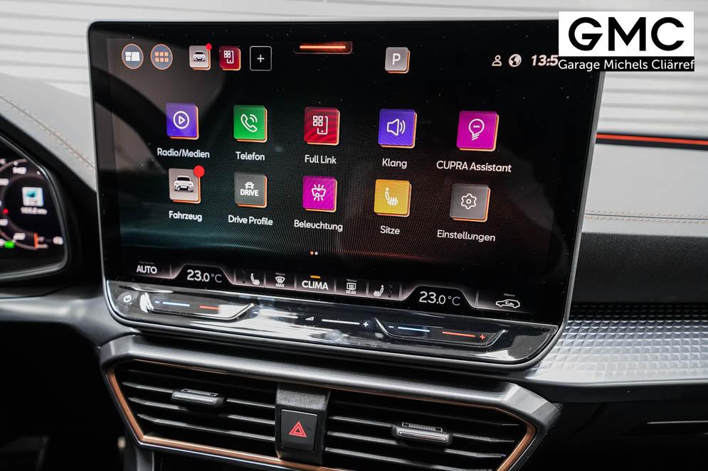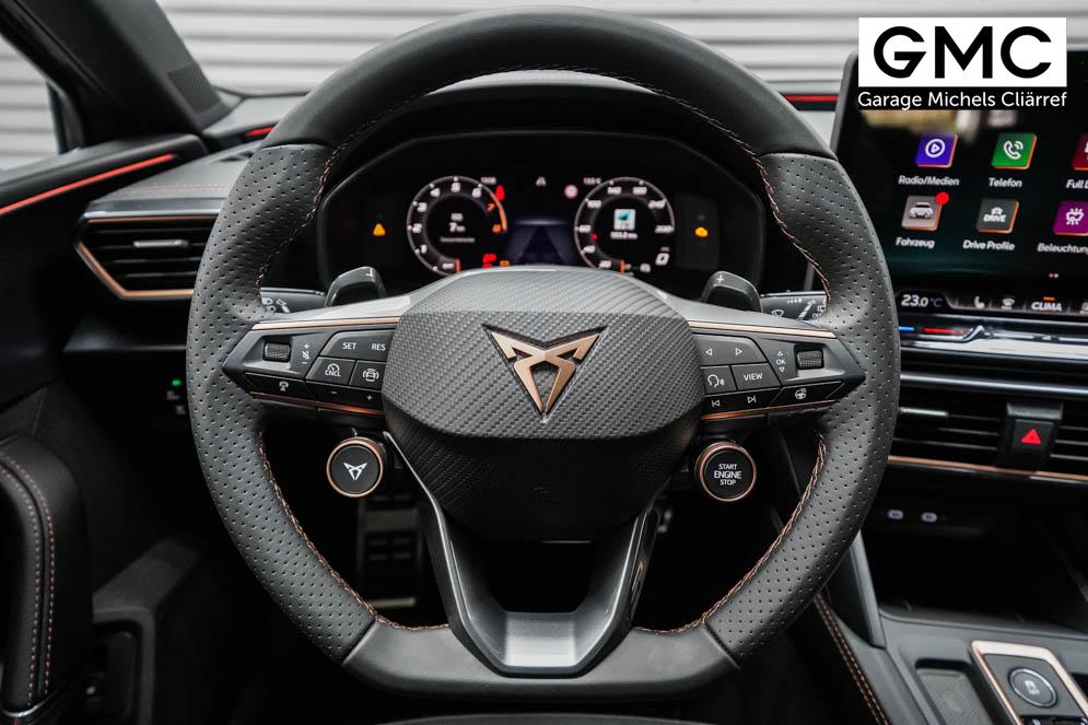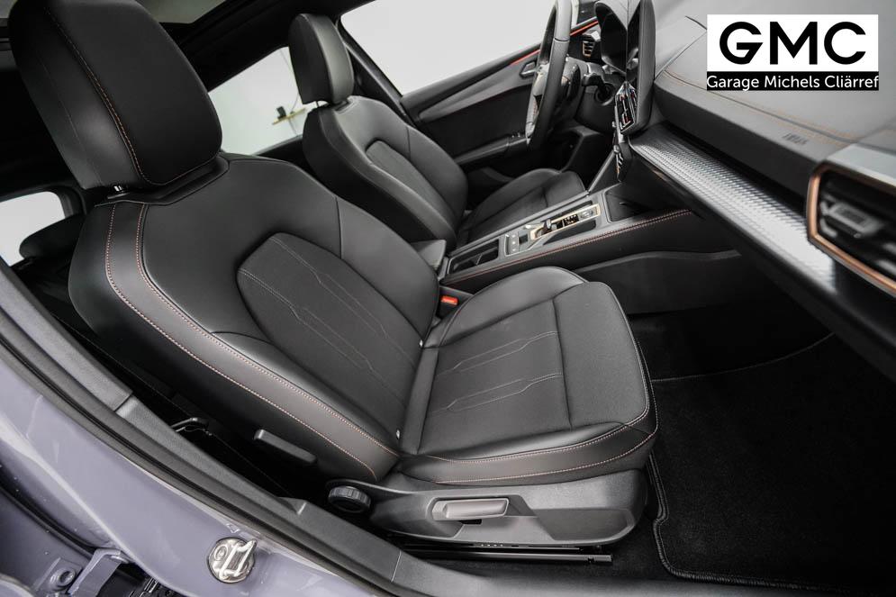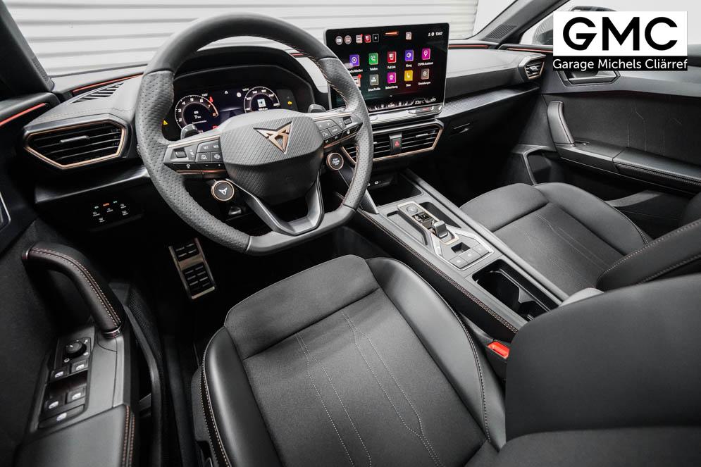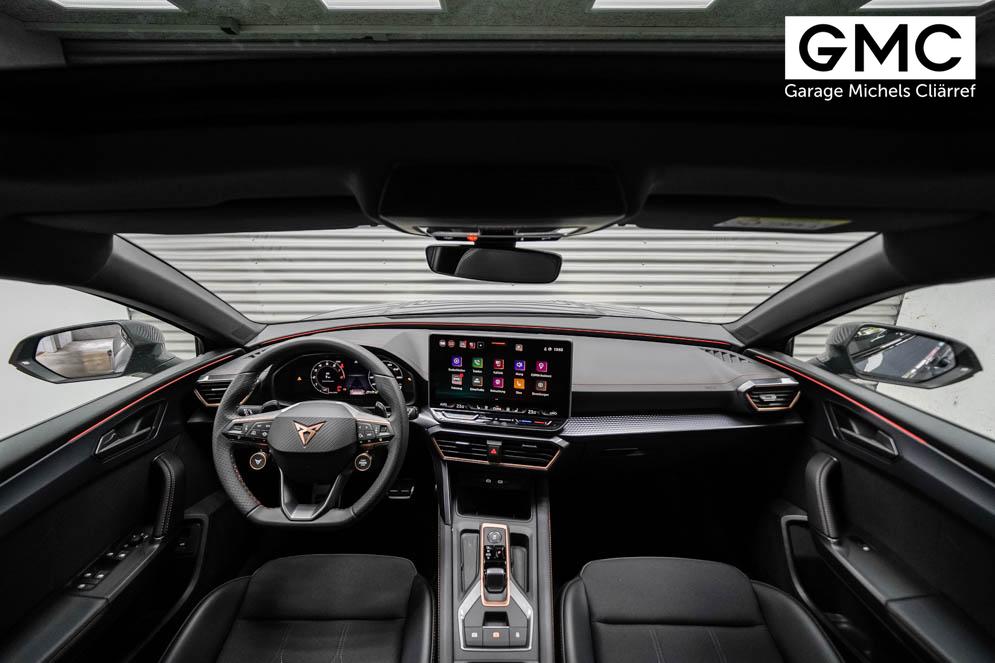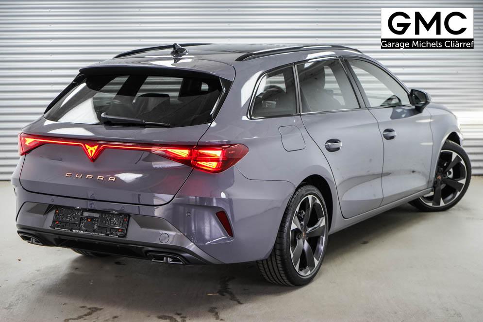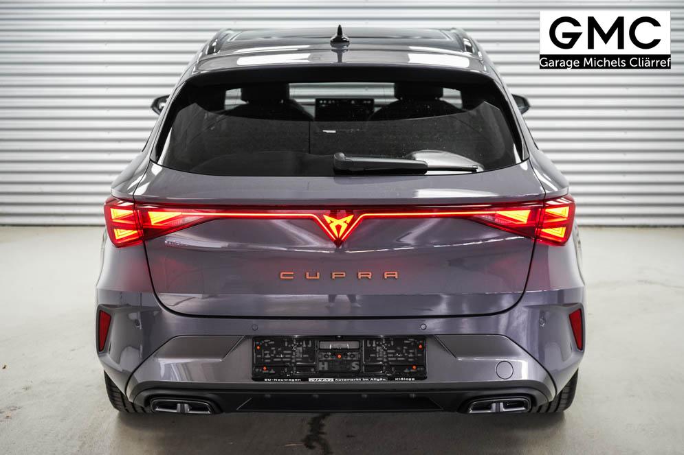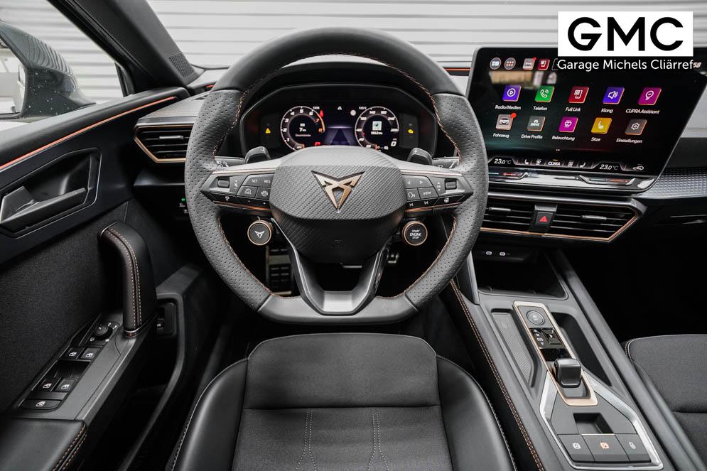 Beifahrersitz höhenverstellbar, Fahrersitz höhenverstellbar, Lederlenkrad, Lendenwirbelstütze, Mittelarmlehne vorne, Sitzbezug Stoff, Gepäckraumabdeckung, geteilt umklappbare Rücksitzlehne, Lenkrad höhenverstellbar, Smart Wraparound Light, Beheizbares Lenkrad, Multifunktionslenkrad mit Satellitenknöpfen, Isofix, Isofix Beifahrersitz, abgedunkelte Scheiben, 18 Zoll Alufelgen Garbi, Dachreling schwarz, ABS, Alarmanlage, Außenspiegel elektrisch anklappbar, Fensterheber elektrisch, Kopfairbags, Nebelscheinwerfer, Schiebedach, Seitenairbags, Servolenkung, Sitzheizung, ESP, Wegfahrsperre, Zentralverriegelung mit Funk, Außenspiegel beheizbar, Beifahrerairbag, Fahrerairbag, Parkpilot hinten, Parkpilot vorne, Reifendruckkontrolle, Regensensor, Lichtsensor, Digital Cockpit, Anhängekupplung schwenkbar, Tempomat Abstand ACC, Fernlichtassistent, Verkehrszeichenerkennung, Full LED Scheinwerfer, Tagfahrlicht LED, Pannenset, Rückfahrkamera, Park-Assistent, Panoramadach, Elektrische Heckklappe inkl. Virtual Pedal, KeylessEntry, StartStopSystem, Innenspiegel automatisch abbl., Müdigkeitswarnsystem, Notrufsystem, Schaltwippen, Klimaautomatik 3-Zonen, Geschwindigkeitsbegrenzer, Android Auto, Apple Carplay, Freisprecheinrichtung, Induktionsladestation, Sprachsteuerung, USB, Radio, Radio DAB, Bluetooth, Bordcomputer, Cupra Full Link, variabler Ladeboden,