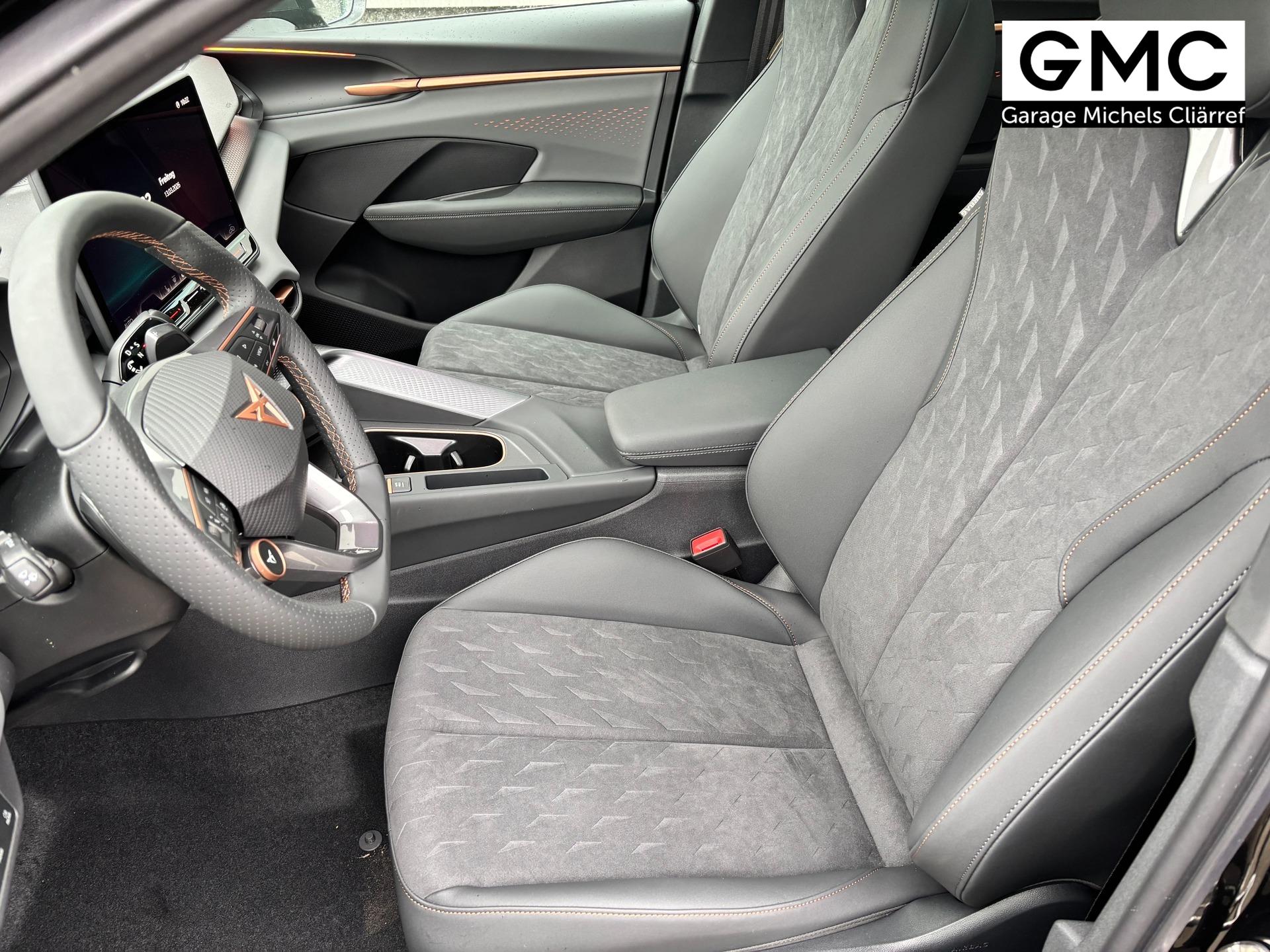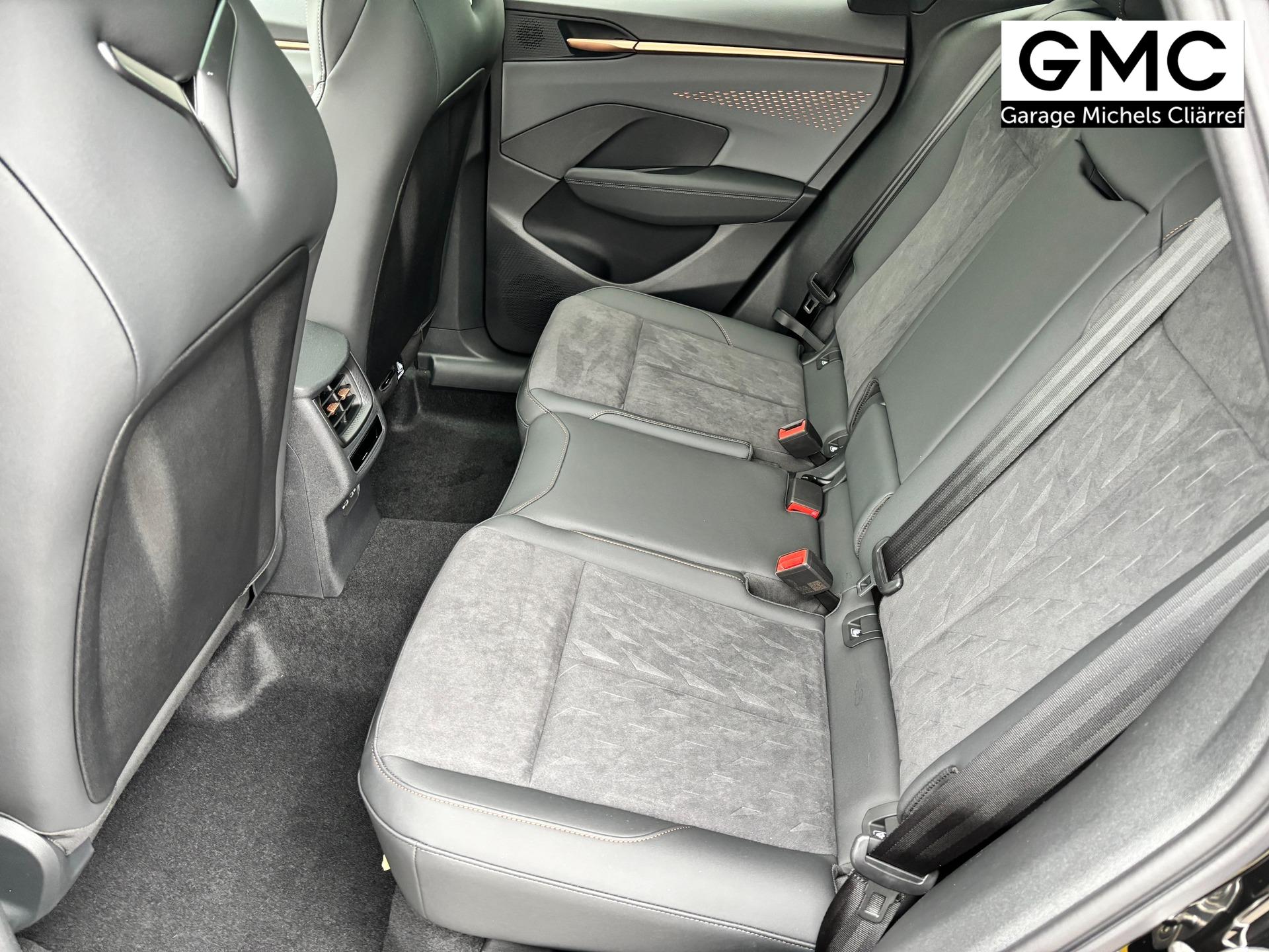 Innenausstattung Interieur "Moon Light" Dinamica: Sitzfläche in Dinamica Schwarz, Nähte in Kupfer; Vordersitze elektrisch einstellbar; Fahrersitz mit Memoryfunktion; Außenspiegel mit Memoryfunktion; Sitzheizung vorne; Elektrische Lordosenstütze Vordersitze; Indirekte Beleuchtung Türen vorne und hinten; Armaturenbrett in Schwarz; Mittelkonsole in Schwarz; Türgriffe in Kunstleder Schwarz; Mittelarmlehne in Schwarz
