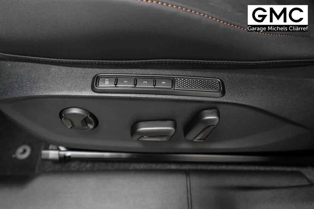 Beifahrersitz höhenverstellbar, Fahrersitz höhenverstellbar, Lederlenkrad, Lendenwirbelstütze, Mittelarmlehne vorne, Sitzbezug Dinamica, Sportsitze, Gepäckraumabdeckung, geteilt umklappbare Rücksitzlehne, Lenkrad höhenverstellbar, Ambiente-Beleuchtung, Elektrisch verstellbarer Fahrersitz mit Memory Funktion, Beheizbares Lenkrad, Multifunktionslenkrad, Isofix, Isofix Beifahrersitz, abgedunkelte Scheiben, 20 Zoll Alufelgen Hadron Kupfer, Dachreling schwarz, ABS, Alarmanlage, Außenspiegel elektrisch anklappbar, Fensterheber elektrisch, Kopfairbags, Nebelscheinwerfer, Schiebedach, Seitenairbags, Servolenkung, Sitzheizung, DCC, ESP, Wegfahrsperre, Außenspiegel beheizbar, Beifahrerairbag, Fahrerairbag, Parkpilot hinten, Parkpilot vorne, Reifendruckkontrolle, Head-up Display, Regensensor, Lichtsensor, Digital Cockpit, Tempomat Abstand ACC, Fernlichtassistent, Spurhalteassistent plus, Totwinkelassistent, Verkehrszeichenerkennung, LED Matrix Scheinwerfer, Tagfahrlicht LED, Pannenset, Rückfahrkamera, Park-Assistent, Panoramadach, Elektrische Heckklappe inkl. Virtual Pedal, KeylessEntry, StartStopSystem, Innenspiegel automatisch abbl., Müdigkeitswarnsystem, Notrufsystem, Schaltwippen, Klimaautomatik 3-Zonen, 360-Grad-Kamera, Geschwindigkeitsbegrenzer, Android Auto, Apple Carplay, Freisprecheinrichtung, Induktionsladestation, Sprachsteuerung, USB, Radio DAB, Bluetooth, Bordcomputer, Radio-Navigationssystem, variabler Ladeboden, Full Link, erweiterte Herstellergarantie 5 Jahre/100.000km, Schalensitze vorn, Exit Assist, Vorbereitung für Anhängekupplung,