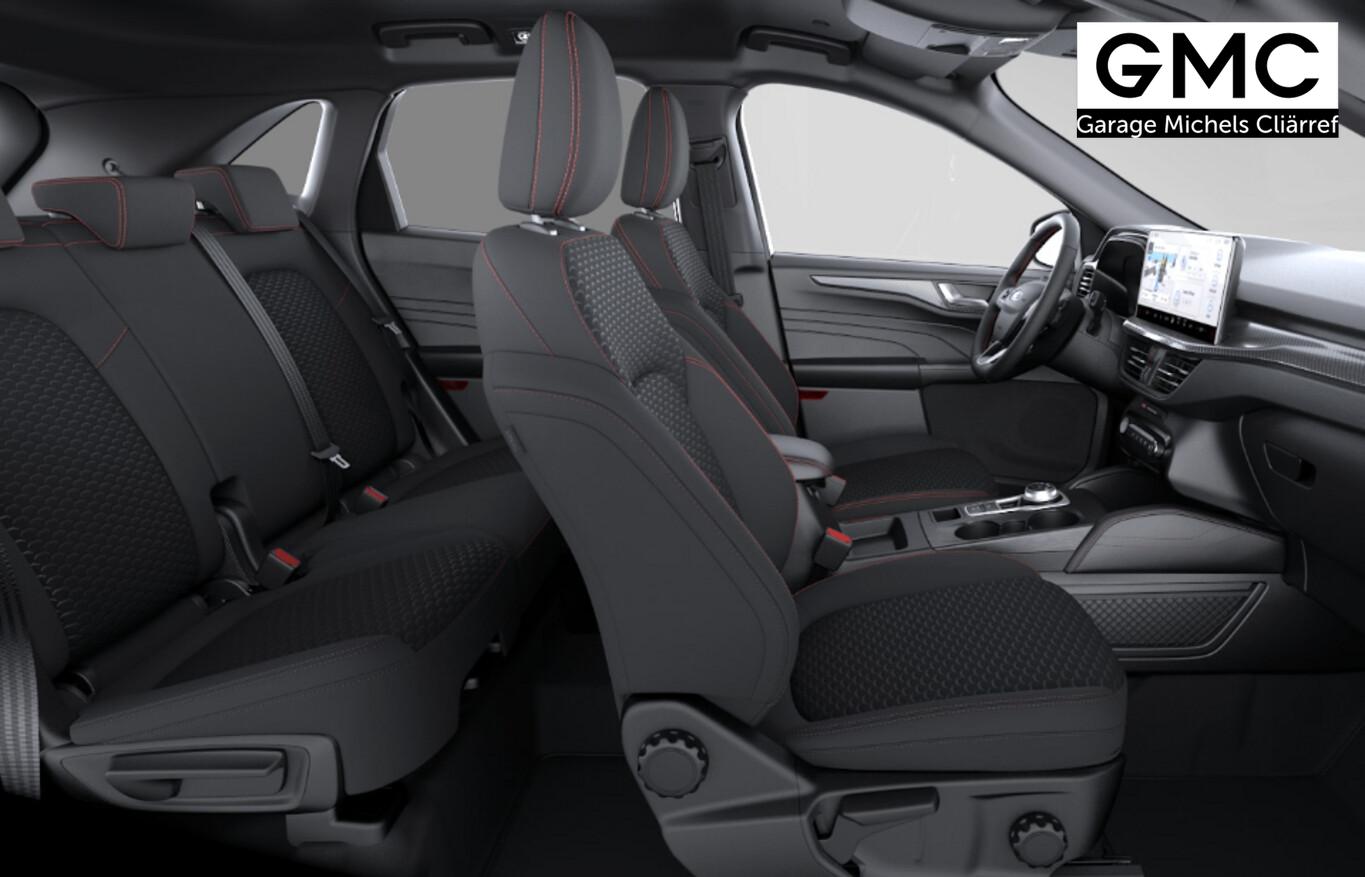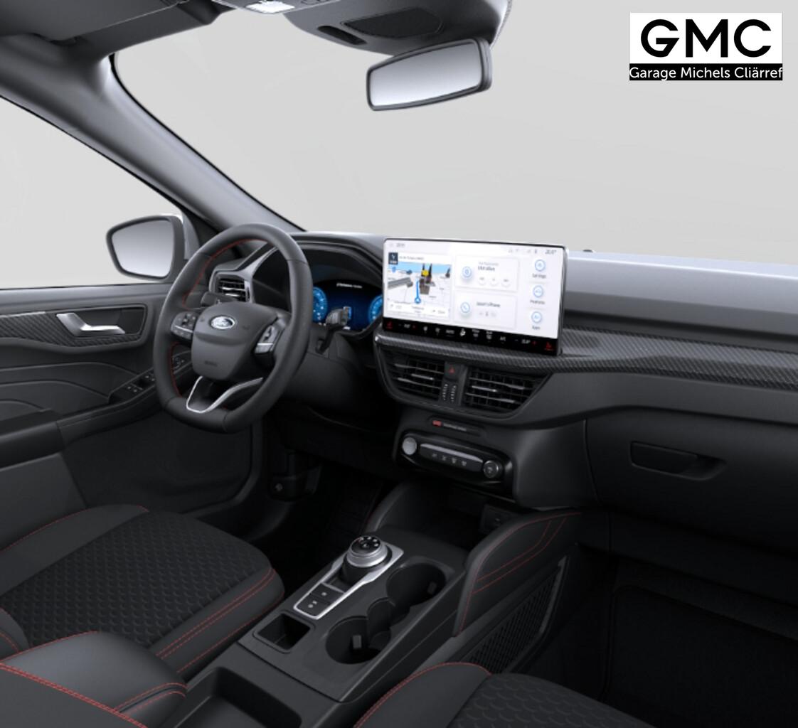 Winter-Paket (Lenkrad heizbar / Sitzheizung hinten / Frontscheibe heizbar), Verglasung hinten abgedunkelt (Privacy Glass), Ladekabel für öffentliche Ladesäulen, Reserverad als Notrad, 360°-Rückfahrkamera, Ablagetasche an Vordersitzlehnen, Adaptive Geschwindigkeits-Regelanlage mit Stop&Go-Funktion, Beifahrerairbag deaktivierbar, Fahrassistenz-Paket, Fahrassistenz-System: Falschfahrer-Warnfunktion, Fahrassistenz-System: Müdigkeitserkennungssensor, Fahrassistenz-System: Rückfahr-Assistent (Notbremsassistent), Fahrassistenz-System: Verkehrsschildassistent, Handschuhfach beleuchtet, LM-Felgen 7,5x18, Notrufsystem, Parkbremse elektrisch, Reifen 225/60 R18, Scheinwerfer LED, Sitzbezug / Polsterung: Stoff Anthrazit mit Ziernähten in Rot, Smartphone Schnittstelle (Apple CarPlay / Android Auto), Touchscreen 13,2 Zoll, Türkantenschutz / Schutzprofil vorn und hinten (Door Edge Protector), Body-Styling-Paket (Kühlergrill schwarz / Seitenschweller Wagenfarbe / Stoßfänger Sport-Ausführung), Sitz vorn links verstellbar (8-fach) (Lendenwirbelstütze Sitz vorn links), Sitz vorn rechts verstellbar (8-fach) (Lendenwirbelstütze Sitz vorn rechts), Audio-Navigationssystem Ford mit AppLink (6 Lautsprecher / Radioempfang digital (DAB) / Ford SYNC IV mit Navigation / Sprachsteuerung und Bluetooth-Schnittstelle / USB-Anschluss / Audiobedienung am Lenkrad), Fahrassistenz-System: Pre-Collision-System (Fahrassistenz-System: Active City Stop / Fahrassistenz-System: Auffahrwarnsystem), KeyFree-System (Power KeyFree-Startfunktion), Mittelkonsole mit Armlehne (Getränkehalter vorn / Mittelarmlehne vorn mit Staufach und 12V-Anschluß), Intelligent Protection System (IPS) (3-Punkt-Sicherheitsgurt hinten / Warnanlage für Sicherheitsgurte hinten / Warnanlage für Sicherheitsgurte vorn / Airbag Fahrer-/Beifahrerseite / Kopf-Schulter-Airbag vorn und hinten / Seitenairbag vorn), Ambiente-Beleuchtung vorn (LED), Dachhimmel Stoff, dunkel, Hybrid 178 kW (Motor 2,5 Ltr. - 112 kW), Induktionsladeschale für mobile Endgeräte, Innenspiegel mit Abblendautomatik, Karosserie: 5-türig, Kombiinstrument Digitalanzeige 12,3 Zoll, Scheibenrahmen schwarz, Scheinwerfer mit Ausschaltverzögerung, Sonnenblende links mit Spiegel (beleuchtet), Sonnenblende rechts mit Spiegel (beleuchtet), Anti-Blockier-System (ABS), Antischlupfregelung (ASR), Antriebsart: Frontantrieb, Elektron. Stabilitäts-Programm (ESP), Sport-Fahrwerk, Getriebe Automatik stufenlos - ECVT, Klimaautomatik 2-Zonen, Fensterheber elektrisch vorn + hinten mit Komfortschließung, Isofix-Aufnahmen für Kindersitz, Rücksitzlehne geteilt, Rücksitzlehne klappbar, Sitzheizung vorn, Sportsitze, Bordcomputer, Dachreling schwarz, Lenkrad (Sport/Leder, ST), Servolenkung elektrisch, Außenspiegel elektr. anklappbar, Außenspiegel elektr. verstell- und heizbar, Fahrassistenz-System: Totwinkel-Assistent, Cross Traffic Alert und Notbremsfunktion, Heckleuchten LED, Scheibenwischer mit Regensensor, Scheinwerfer-Assistent mit Tag-/Nachtsensor, Tagfahrlicht LED, Parkpilotsystem vorn und hinten, Fahrassistenz-System: Spurhalteassistent, Reifendruck-Kontrollsystem