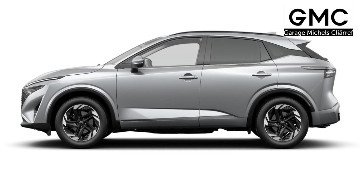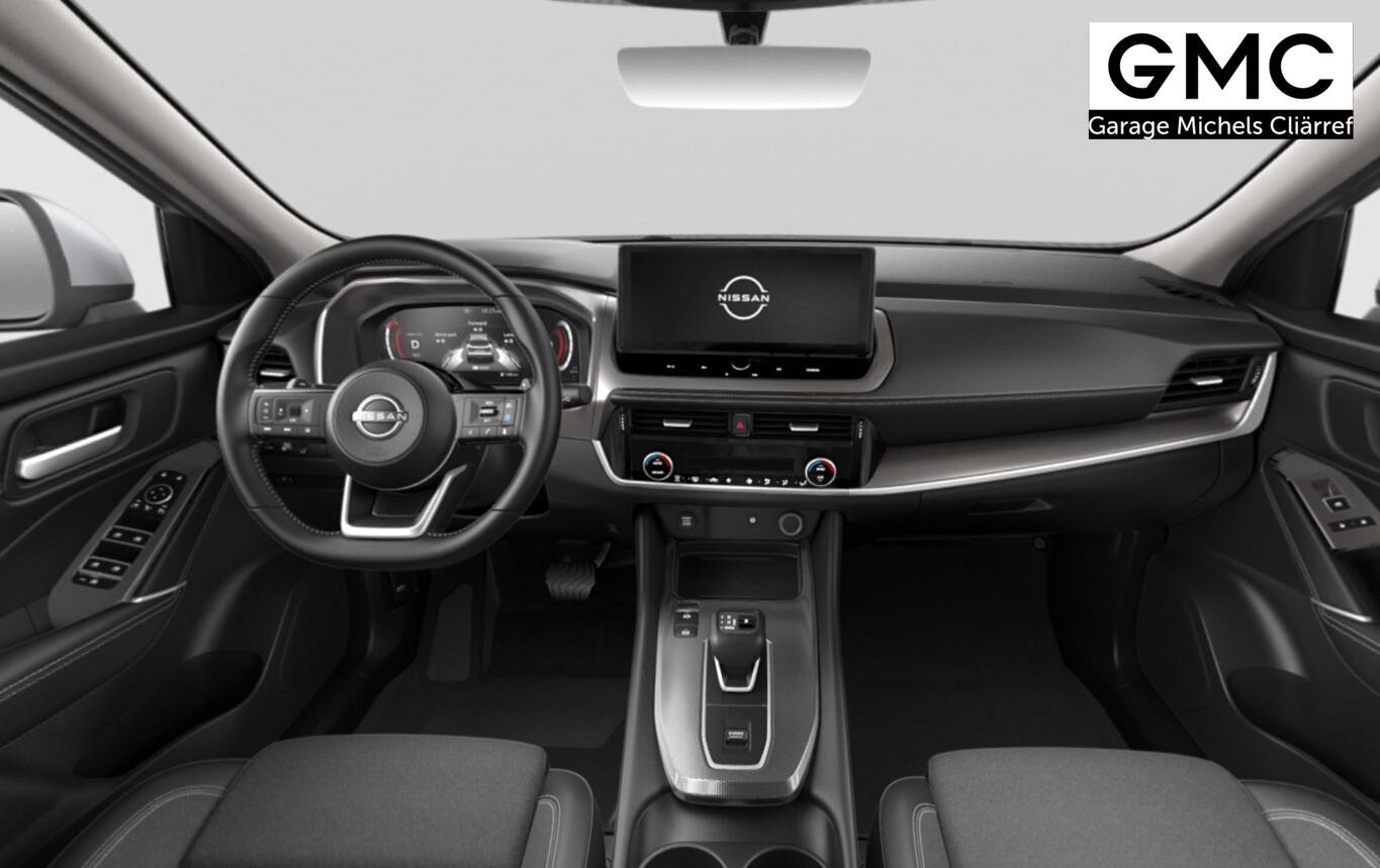 Winter-Paket (Lenkrad heizbar / Sitzheizung vorn / Frontscheibe heizbar), Bluetooth-Schnittstelle, Dachreling, Einparkhilfe vorn und hinten, Fahrassistenz-System: Stauwarnsystem, Gurtwarnanlage, Induktionsladeschale für Smartphone, LM-Felgen 18 Zoll, Notruf und Pannenanruf (eCall), Radioempfang digital (DAB), Reifen 235/55 R18, Schadstoffarm nach Abgasnorm Euro 6e (EU6 EA), Scheinwerfer mit Follow-me-home-Funktion, Servolenkung elektrisch, Wegfahrsperre, Multimedia-System Nissan Connect (6 Lautsprecher / Audiosystem / Smartphone kabellose Schnittstelle (Apple CarPlay & Android Auto) / Service-System: Google Services / Service-System: Nissan Connect Services), Schließ-/Startsystem intelligent key (Keyless-Entry / Start-Stop-Knopf), Lenkrad (Leder) mit Multifunktion (Audiobedienung am Lenkrad), Dachantenne im Haifischflossen-Design, Elektr. Bremskraftverteilung (EBD), Geschwindigkeits-Begrenzeranlage, Innenspiegel mit Abblendautomatik, Instrumentenanzeige TFT-Farbdisplay (12,3 Zoll), Karosserie: 5-türig, Kofferraumbeleuchtung, Lendenwirbelstütze Sitz vorn links, elektr. verstellbar, Lenksäule (Lenkrad) höhen-/längsverstellbar, Leseleuchten vorn und hinten, Mild-Hybrid 116 kW (Motor 1,3 Ltr. - 116 kW DIG-T MHEV), Mittelarmlehne hinten mit Getränkehalter, Otto-Partikelfilter (OPF), Parkbremse elektrisch, Schalt-/Wählhebelgriff Leder, Sitz vorn links höhenverstellbar, Sitz vorn rechts höhenverstellbar, Sonnenblenden mit Spiegel (beleuchtet), Steckdose (12V-Anschluß) im Koffer-/Laderaum, Steckdose (12V-Anschluß) in Mittelkonsole, Touchscreen-Farbdisplay (12,3 Zoll), Navigationssystem, USB-Anschluss im Fond, USB-Schnittstelle, Anti-Blockier-System (ABS), Fahrassistenz-System: Moving Object Detection (MOD, Fußgängererkennung und bewegliche Objekterkennung), Antriebsart: Frontantrieb, Elektron. Stabilitäts-Programm (ESP), Getriebe Automatik stufenlos - X-Tronic-CVT, Klimaautomatik 2-Zonen, Airbag Fahrer-/Beifahrerseite, Fensterheber elektrisch vorn + hinten, Isofix-Aufnahmen für Kindersitz, Rücksitz geteilt/klappbar, Seitenairbag, Sitzbezug / Polsterung: Stoff/Kunstleder, Verglasung hinten abgedunkelt, Fahrmodusschalter, Auto-Hold-Funktion, Fahrassistenz-System: Auffahrwarnsystem (Forward Collision Warning, FCW), Fahrassistenz-System: Berganfahr-Assistent, Fahrassistenz-System: Verkehrszeichenerkennung, Geschwindigkeits-Regelanlage (Tempomat) mit Abstandsregelung, Rückfahrkamera, Außenspiegel elektr. anklappbar, Außenspiegel elektr. verstell- und heizbar, Automatische Fahrlichtschaltung, Fahrassistenz-System: Fernlichtassistent, Fahrassistenz-System: Totwinkel-Assistent, Heckleuchten LED, Scheibenwischer mit Regensensor, Scheinwerfer LED, Tagfahrlicht LED, Fahrassistenz-System: aktiver Spurhalteassistent, mit korrigierendem Bremseingriff, Fahrassistenz-System: Autonomer Notbrems-Assistent, Fahrassistenz-System: Müdigkeitserkennungs-Sensor, Fahrassistenz-System: Querverkehrs-Assistent Heck (Rear Cross Traffic Alert, RCTA), Reifendruck-Kontrollsystem, Diebstahl-Warnanlage, Start/Stop-Anlage