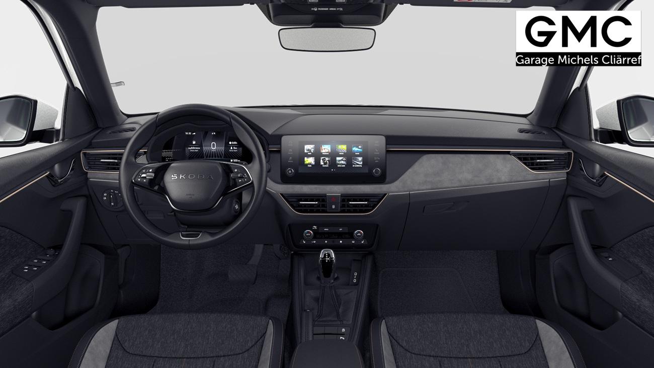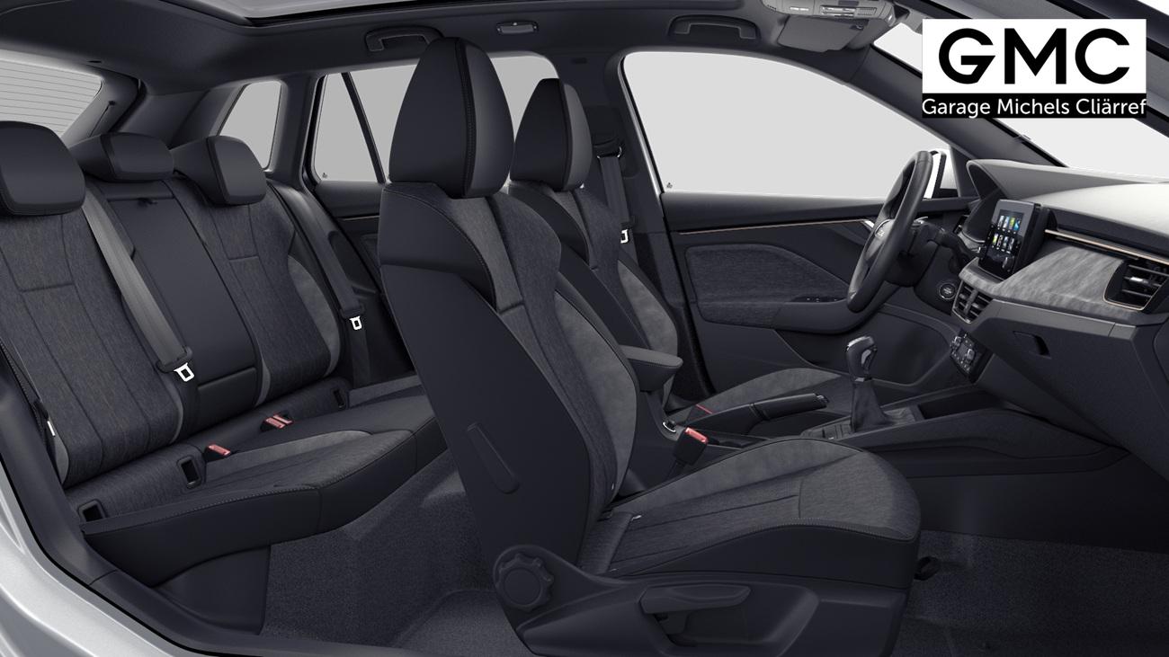 Innenausstattung Design Selection LODGE Stoffbezüge Lodge Schwarz/Grau mit Kontrastline Copper, Dekor Suedia Grau, Interieurleisten und Luftausströmerumrandung Schwarz glänzend mit Kontrastline Copper, LED-Ambientebeleuchtung (2-farbig, Weiß oder Rot), Mittelarmlehne hinten