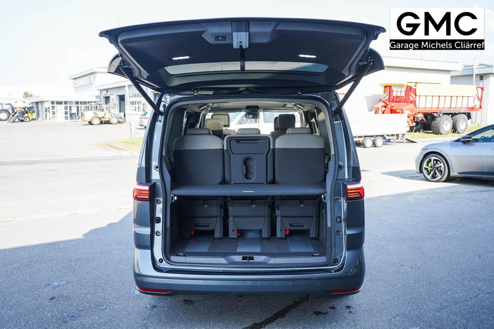 Beifahrersitz höhenverstellbar, Fahrersitz höhenverstellbar, Lederlenkrad, Mittelarmlehne vorne, 7 Sitze, Gepäckraumabdeckung, Lenkrad höhenverstellbar, Sitzbezug Bi-Color ArtVelours, Ambiente-Beleuchtung, Beheizbares Lenkrad, Multifunktionslenkrad, Isofix, abgedunkelte Scheiben, 18 Zoll Alufelgen Toshima schwarz, Schiebetür rechts virtuelles Pedal, Schiebetür links virtuelles Pedal, Schiebetür beidseitig elektrisch, ABS, Alarmanlage, Außenspiegel elektrisch, Fensterheber elektrisch, Klimaautomatik, Kopfairbags, Seitenairbags, Servolenkung, Sitzheizung vorne, ESP, Standheizung, TRC, Wegfahrsperre, Zentralverriegelung mit Funk, Beifahrerairbag, Fahrerairbag, Parkpilot hinten, Parkpilot vorne, Reifendruckkontrolle, Regensensor, Lichtsensor, Digital Cockpit Pro, Anhängekupplung schwenkbar, Tempomat Abstand ACC, Fernlichtassistent, Notbremsassistent, Spurhalteassistent, Totwinkelassistent, Verkehrszeichenerkennung, IQ.Light Matrix-LED-Scheinwerfer, Tagfahrlicht, Rückfahrkamera, Park-Assistent, Panoramadach, elektr. Heckklappe inkl. Virtual Pedal, KeylessEntry, StartStopSystem, Innenspiegel automatisch abbl., Müdigkeitswarnsystem, Notrufsystem, Geschwindigkeitsbegrenzer, Android Auto, Apple Carplay, Freisprecheinrichtung, Sprachsteuerung, 10 Zoll Touchscreen, USB Typ-C, Radio Ready 2 Discover, Radio DAB, Bluetooth inkl. Handykopplung, Bordcomputer, Navigationssystem Discover Pro, Wired and Wireless App Connect, Ausweichunterstützung, 8 Lautsprecher, LED-Rückleuchten, Trailer Assist, Assistenzpaket Advanced, Notfallassistent, Easy Open Paket Advanced, 5 Jahre bis max. 100.000km Herstellergarantie, Travel Assist, Schiebefenster hinten,