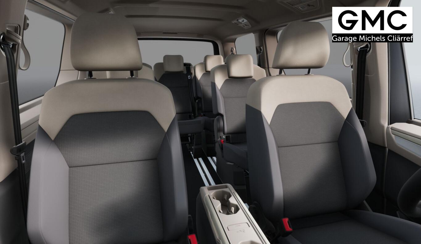 Audio-Navigationssystem Discover Pro (Touchscreen-Farbdisplay 10", inkl. Streaming & Internet), Fahrassistenz-Paket Basic (Service-System: Intelligente Fahrzeugvernetzung (Car2X) / Fahrassistenz-System: Autom. Distanzregelung (ACC inkl. Stop&Go-Funktion) / Fahrassistenz-System: Spurwechselassistent (Side Assist) mit Auspark-Assistent und Ausstiegswarnung), Heckklappe elektr. betätigt (öffnen + schliessen), Multifunktionstisch verschiebbar, Schließ-/Startsystem Keyless Advanced mit Safesicherung, Verglasung hinten abgedunkelt (65 %), Schmutzfänger vorn und hinten, Blinkleuchten LED in Außenspiegel integriert, Fensterheber elektrisch vorn, Handschuhfach abschließbar, Reifen 235/55 R17, Sitz-Paket: 7-Sitzer, 2-2-3 (2 Einzelsitze, 2 Einzelsitze, 3 Einzelsitze), Sprachsteuerungs-System, Wegfahrsperre (elektronisch), Zusatzheizung, Bremsscheiben vorn 17" (Bremsscheiben vorn 17" (332 mm x 30 mm)), Mobile Online Dienste Vorbereitung We Connect und We Connect Plus (Vorbereitung Onlinedienste), Außenspiegel schwarz lackiert, Bodenbelag im Lade-/Fahrgastraum Teppich, Chromleisten seitlich und Heckklappe unten, DC / DC Wandler 3 kW, Diebstahlsicherung für Räder (Felgenschlösser), Digital Cockpit Pro (Instrumentenanzeige Digital), Elektromotor 85 kW (Hybridantrieb), Fahrassistenz-System: Ausweich-Assistent und Abbiege-Assistent, Fenster im Lade-/FG-Raum: - feststehend, vorn links, Fenster im Lade-/FG-Raum: - feststehend, vorn rechts, Frontscheibe Verbundglas getönt, Funkschlüssel (2), Handschuhfach beleuchtet, Hybrid 180 kW (Motor 1,5 Ltr. - 130 kW TSI), Innenausstattung: Dekoreinlagen Dark Woodgrain Optic, Innenleuchtenkonzept im Fahrgastraum, Innenspiegel mit Abblendautomatik, Intelligent Speed Assist inkl. Geschwindigkeitsbegrenzer, Karosserie/Aufbau: Bus, Kraftstofftank: 45 Ltr., Ladekabel mit Schukostecker (Mode 2), Ladekantenabdeckung in Kunststoff, mit Edelstahleinsatz, Laderaumunterteilung und Gepäcksicherungsnetz, Lautsprecher (8), Lichtleiste zwischen Scheinwerfer, Mobile Online Dienste App-Connect inkl. App-Connect Wireless (Apple CarPlay, Android Auto), Otto-Partikelfilter (OPF), Pedale Edelstahl, Radioempfang digital (DAB+), Radstand 3124 mm, Schlechtwetter-Licht, Schubladen unter Rücksitze außen und 2 Abfallbehälter, Sitzbezug / Polsterung: ArtVelours / Kunstleder, Sitze im Fahrerhaus: 4 Armlehnen, Lendenwirbelstützen elektr. und Klapptische, Sitze im Fahrerhaus: Beifahrersitz höhenverstellbar, Sitze im Fahrerhaus: Fahrersitz höhenverstellbar, Sitze im Lade-/FG-Raum: 1.Reihe mit 2 Armlehnen innen (abnehmbar), Sitze im Lade-/FG-Raum: 2.Reihe mit Vorbereitung für 2 Armlehnen innen, Sonnenblenden mit Spiegel (beleuchtet), Umfeldbeleuchtung seitlich mit Projektionsfunktion, Umfeldleuchte in Heckklappe und Ambiente-Beleuchtung (30 Farben), Warnanlage für Sicherheitsgurte vorn und hinten, Zul. Gesamtgewicht 2,95 t, Mobiltelefon Schnittstelle Bluetooth, Multimedia-Schnittstelle 2 x USB vorn und 4 x USB-Ladeanschluß Fahrgastraum (Typ C), Sprachassistent IDA und elektronische Sprachverstärkung, Anti-Blockier-System (ABS), Fahrassistenz-System: Bremsassistent (HBA), Antriebsart: Allradantrieb, Elektron. Stabilitäts-Programm (ESP) mit Bremskraftverstärker elektro-mechanisch, Getriebe 6-Gang - Doppelkupplungsgetriebe DSG, Klimaanlage Climatronic 3-Zonen inkl. Fondbedienung, Airbag Fahrer-/Beifahrerseite, Beifahrerairbag abschaltbar, Seitenairbag / Kopfairbag / Center-Airbag vorn und Kopfairbag hinten, Sitze im Fahrerhaus: Fahrer- und Beifahrersitz heizbar, Schiebetür Lade-/Fahrgastraum links elektr. betätigt, Schiebetür Lade-/Fahrgastraum rechts elektr. betätigt, Fahrassistenz-System: Verkehrszeichenerkennung, Rückfahrkamera, Notrufsystem, Lenkrad (Leder) mit Multifunktion und Schaltfunktion, Servolenkung elektro-mechanisch, geschwindigkeitsabhängig, Fahrassistenz-System: Dynamische Fernlichtregulierung (Dynamic Light Assist), Matrix-LED-Scheinwerfer (IQ.Light), Regensensor, Tagfahrlicht und Assistenzfahrlicht mit Coming Home / Leaving Home, Fahrassistenz-System: Parklenkassistent (Park Assist) inkl. Einparkhilfe vorn und hinten, Fahrassistenz-System: Ablenkungs- und Müdigkeitserkennung, Fahrassistenz-System: Spurhalteassistent (Lane Assist), Reifenkontroll-Anzeige, Diebstahl-Warnanlage + Innenraumüberwachung / Abschleppschutz + Back-up-Horn
